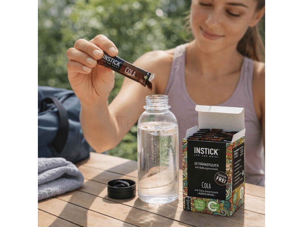 INSTICK Cola je instantná colová príchuť do vody v tyčinkovej forme – vysypeš stick do pohára s perlivou alebo tichou vodou a za 5 sekúnd máš domácu colu. Na rozdiel od Coca-Cola Zero, Pepsi Max aj originálneho SodaStream Cola sirupu neobsahuje kofeín, aspartám, kyselinu fosforečnú ani cyklamát. Je to prvá cola na slovenskom trhu vhodná pre deti, tehotné ženy aj diabetikov a keto súčasne. A to všetko bez cukru. Nemecká kvalita.