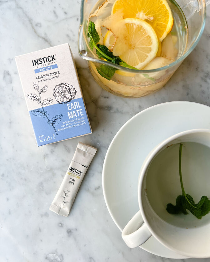 Instantný rastlinný nápoj bez cukru z extraktu maté a ovocného extraktu bergamotu, jemne sladený stéviou a bez umelých farbív. Vhodný na prípravu so studenou aj horúcou vodou, vďaka čomu funguje ako univerzálny nápoj počas celého roka.