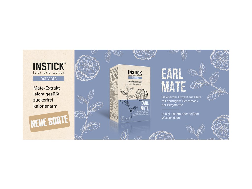 - Instantný nápoj v prášku Earl Mate je jednou z našich odrôd extraktov. Hotový miešaný nápoj je vegánsky, bez cukru a mierne osladený steviol-glykozidmi z rastliny stévia (sladidlo).