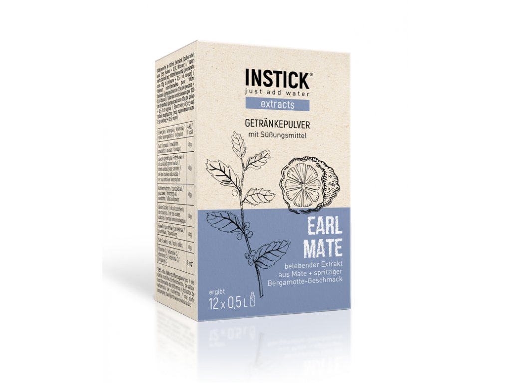 Earl Mate je instantný nápoj v prášku s extraktom z maté, prírodnou príchuťou bergamotu a vitamínom C. Prášok v tyčinkách je ideálny na zmiešanie s 500 ml studenej vody a pitie ako osvieženie bez cukru. Nápojový prášok je samozrejme možné zmiešať aj s horúcou vodou, a preto si ho môžete vychutnať ako nápoj z bylinkového čaju. Potešenie pre telo aj myseľ!