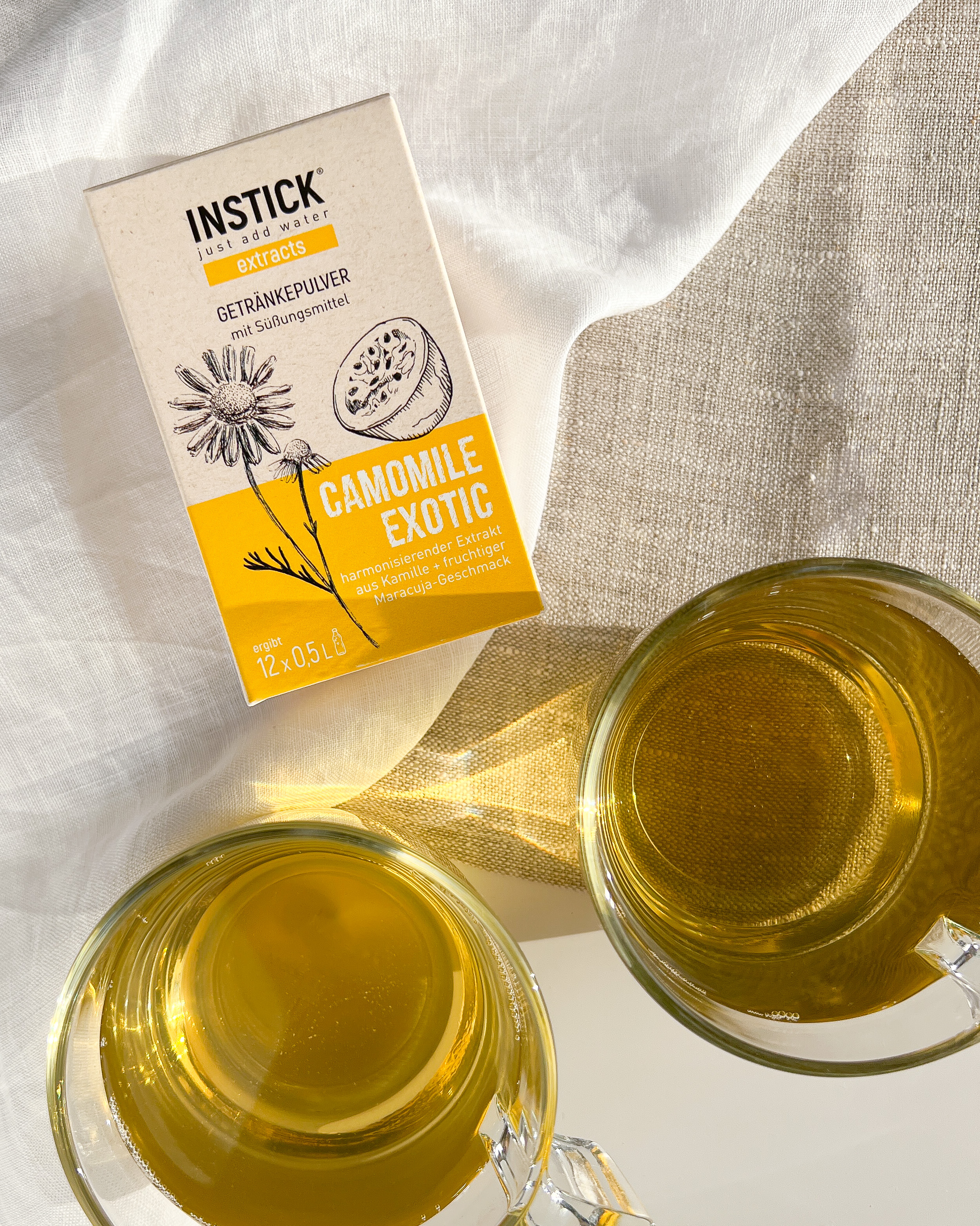 Instantný bylinný nápoj bez cukru z rastlinného extraktu harmančeka a ovocného extraktu marakuje, jemne sladený stéviou a bez umelých farbív. Vhodný na prípravu so studenou aj horúcou vodou, podľa chuti a aktuálnej nálady.
