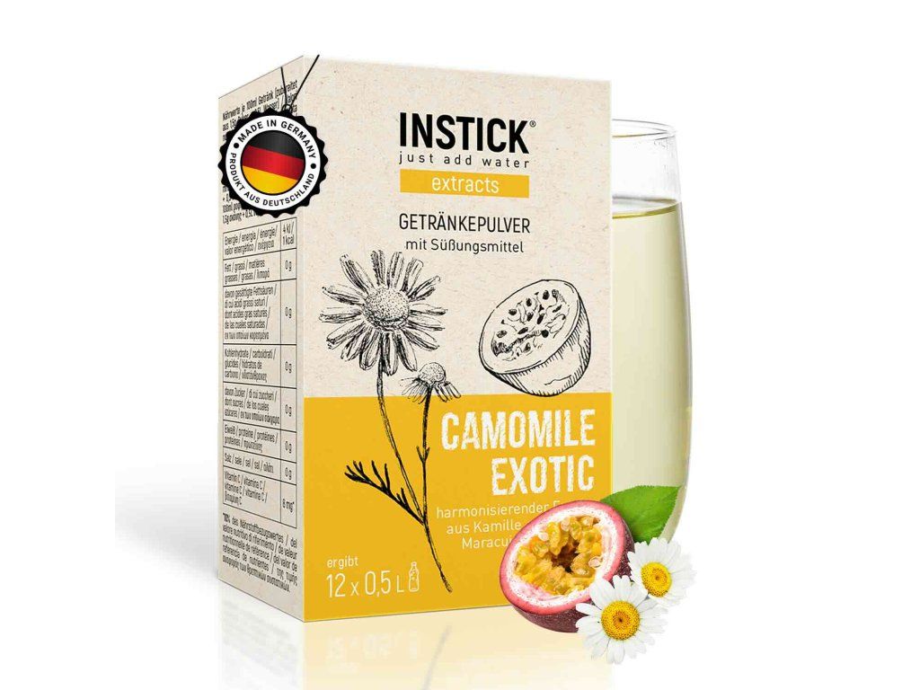 Exotic Chamomile je prírodný nápoj z bylinných a ovocných extraktov, založený na rastlinnom extrakte harmančeka a ovocnom extrakte marakuje. Chuť aj farba pochádzajú z použitých extraktov, bez umelých farbív a bez cukru. Sladený je jemne stéviou, takže nepôsobí presladene.