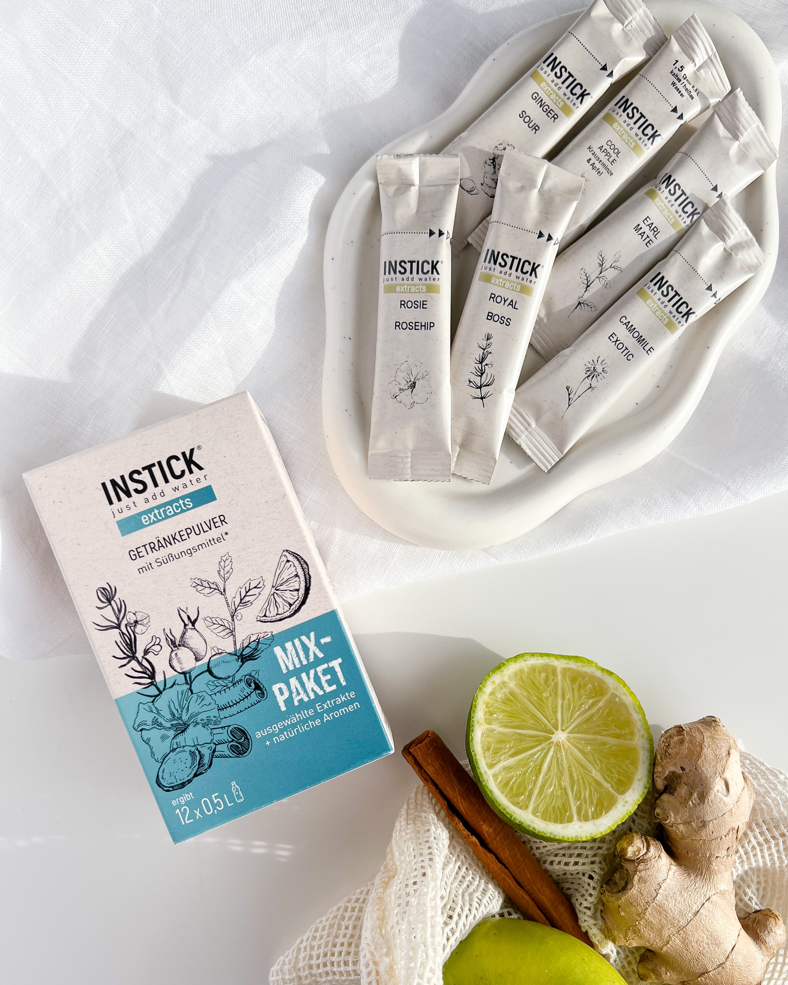 Extrakty INSTICK sú jemne sladené výhradne steviol-glykozidmi z rastliny stévia. Na rozdiel od klasických sladených nápojov tak ponúkajú príjemnú chuť bez kalórií a bez vplyvu na hladinu cukru v krvi. Výnimkou je variant Cool Apple, ktorý je doplnený o prášok zo stéviového extraktu.