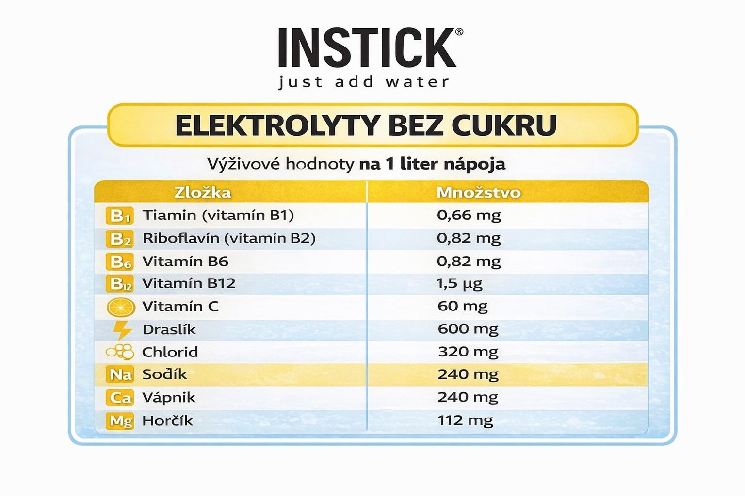 INSTICK Sport Active je moderný elektrolytický nápoj bez cukru, vytvorený pre ľudí, ktorí chcú mať hydratáciu a doplnenie iónov pod kontrolou – bez zbytočných kalórií a bez kompromisov v chuti.