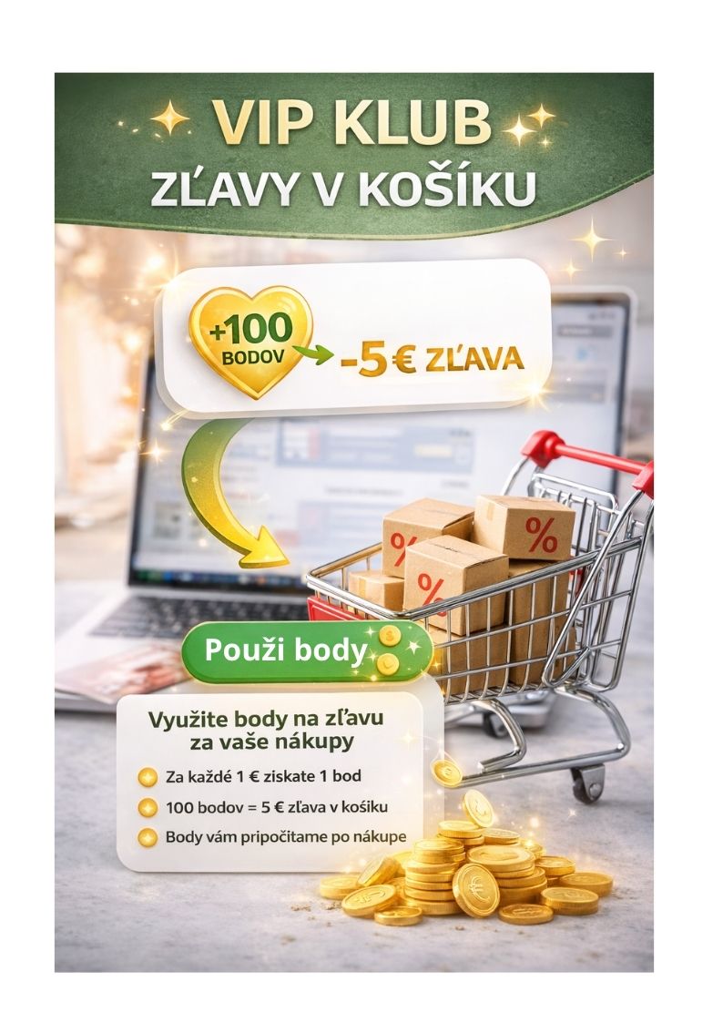 Registrácia je zdarma. Body uplatníte ako zľavu priamo v košíku – pri objednávke od 20 €.
